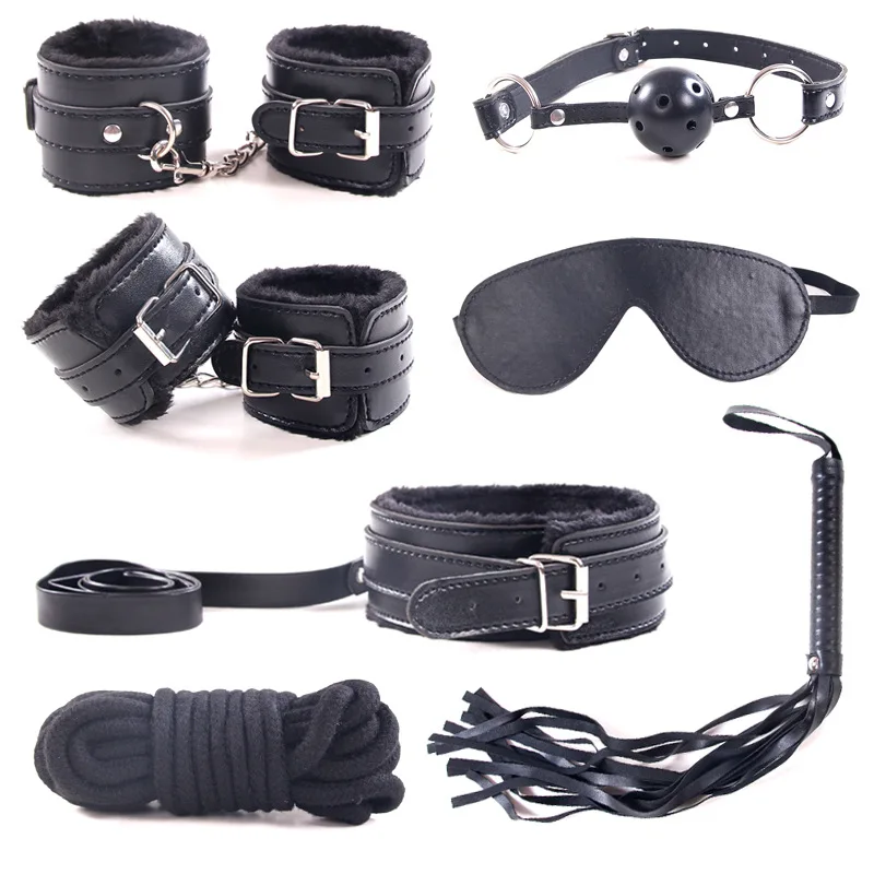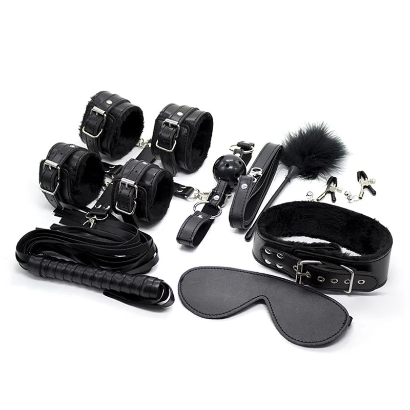 BEST QUALITY 7Pcs/set Sex Products Erotic Toys for Adults BDSM Sex Bondage Set Handcuffs Nipple Clamps Gag Whip