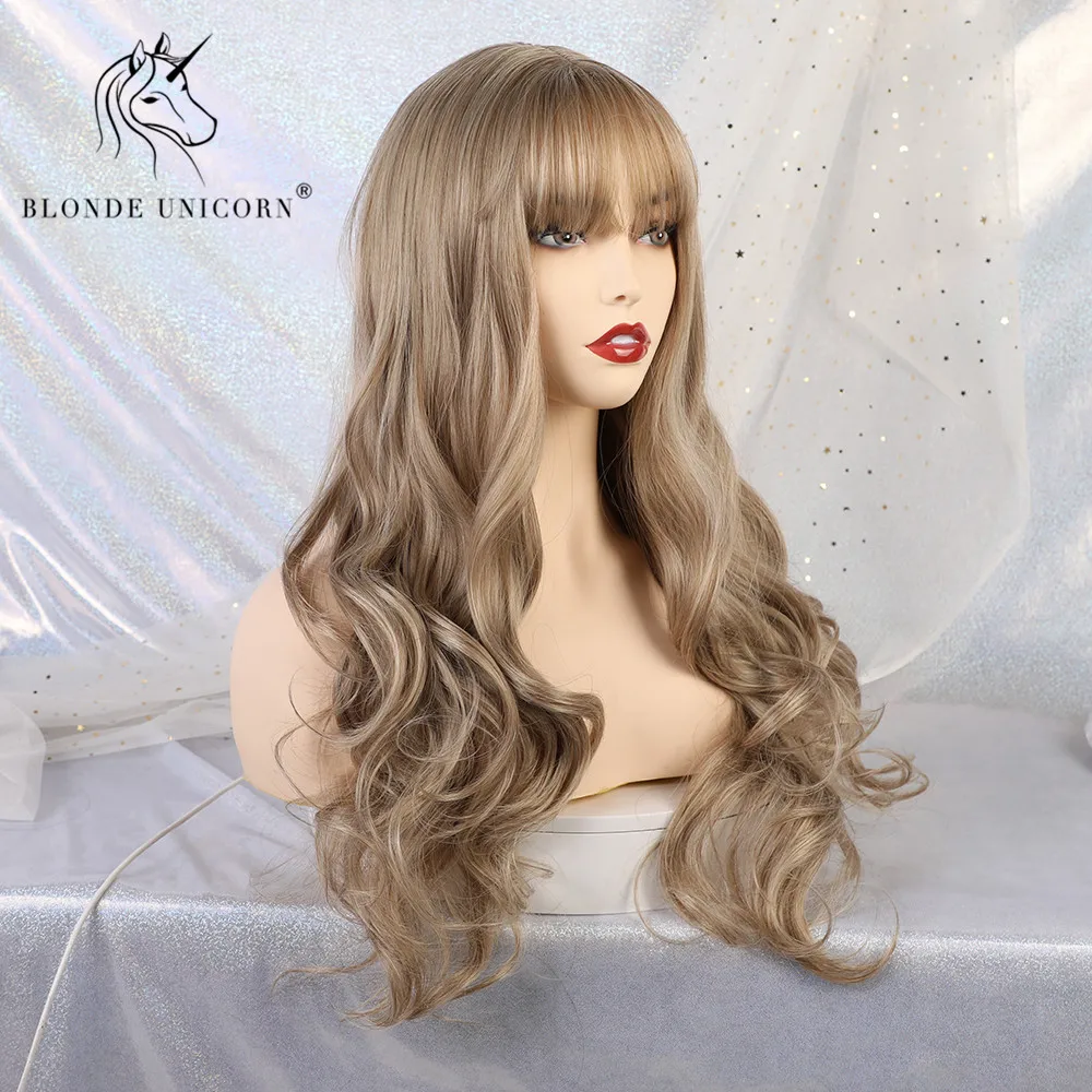 Blonde Unicorn Synthetic Long Wavy Wigs with Bangs Light Blonde Cosplay and Party Wig for White Wom
