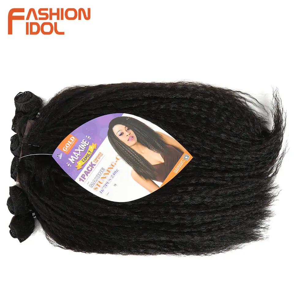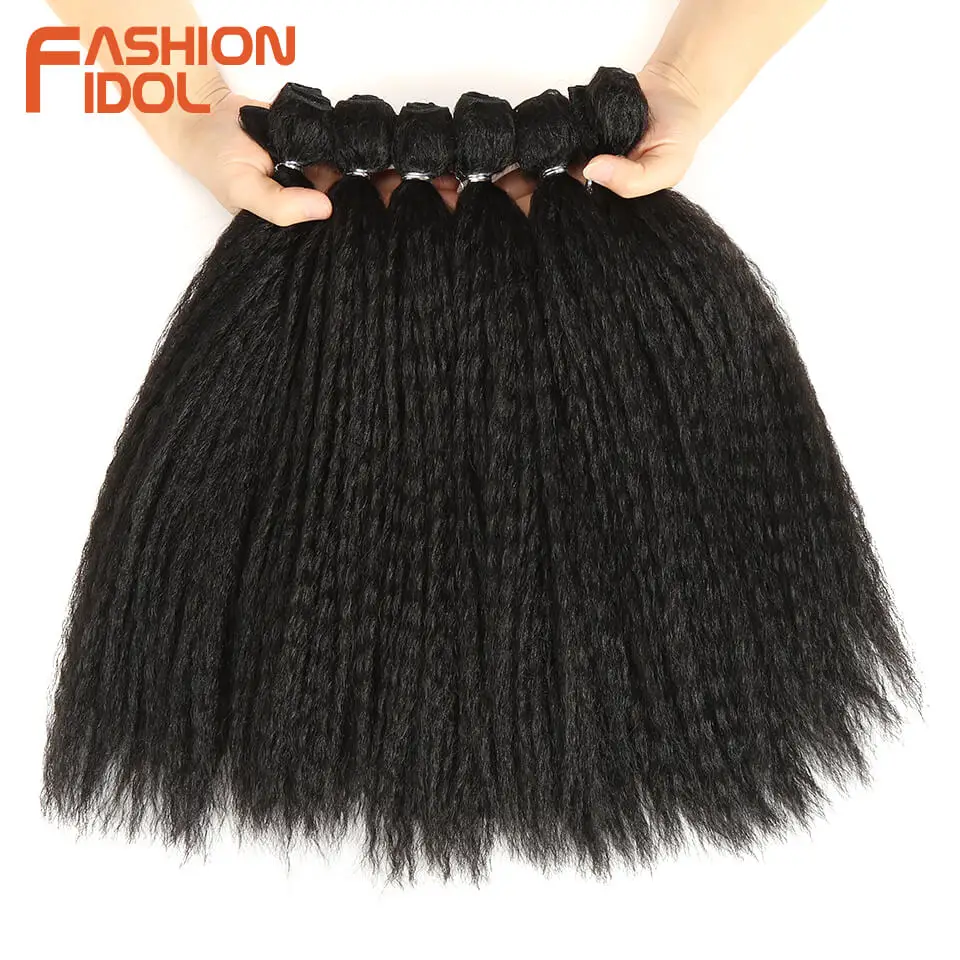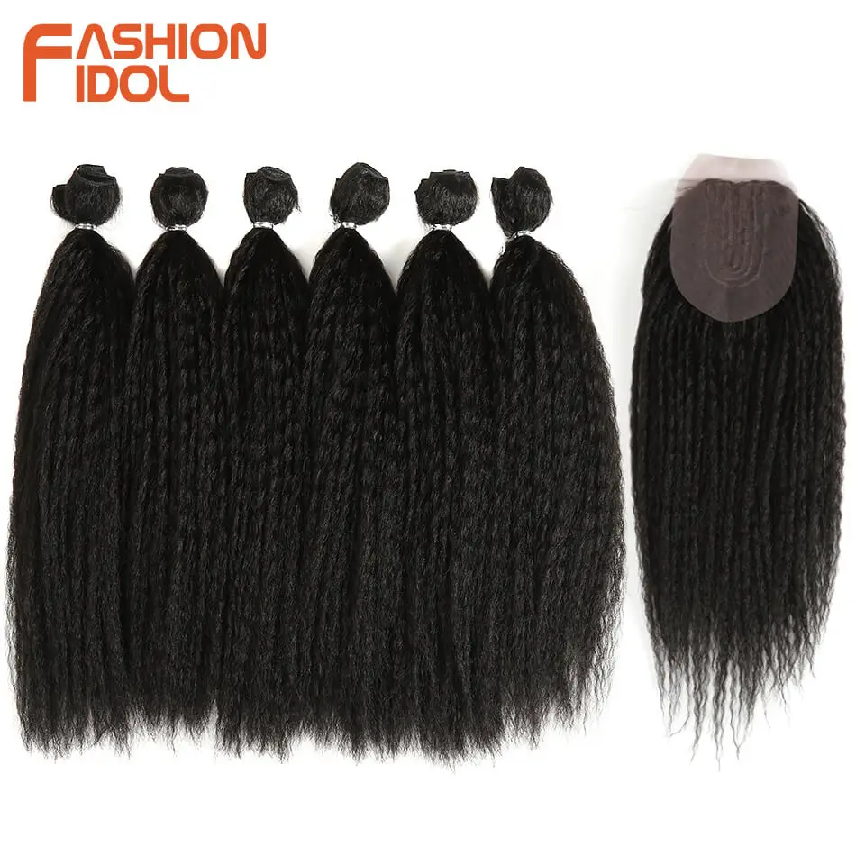 FASHION IDOL Afro Kinky Straight Hair Weave 6Bundles With Closure Ombre Synthetic Hair Extension 7p