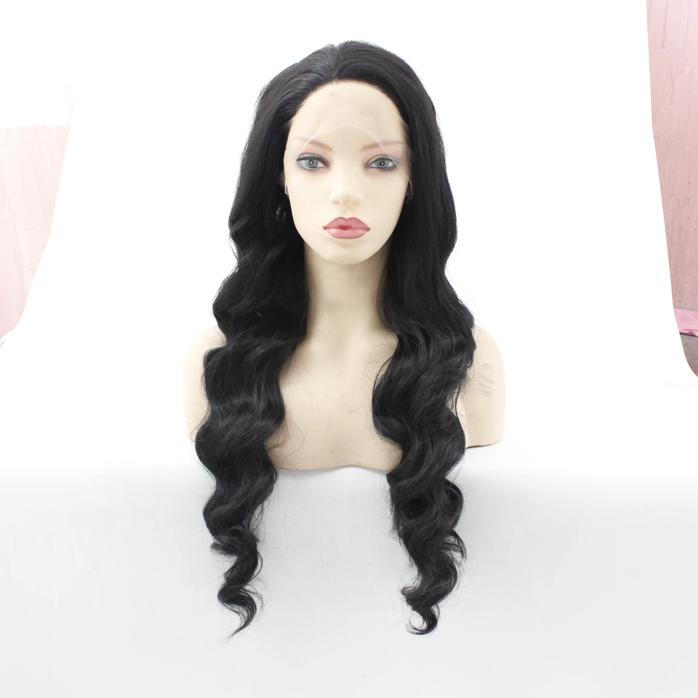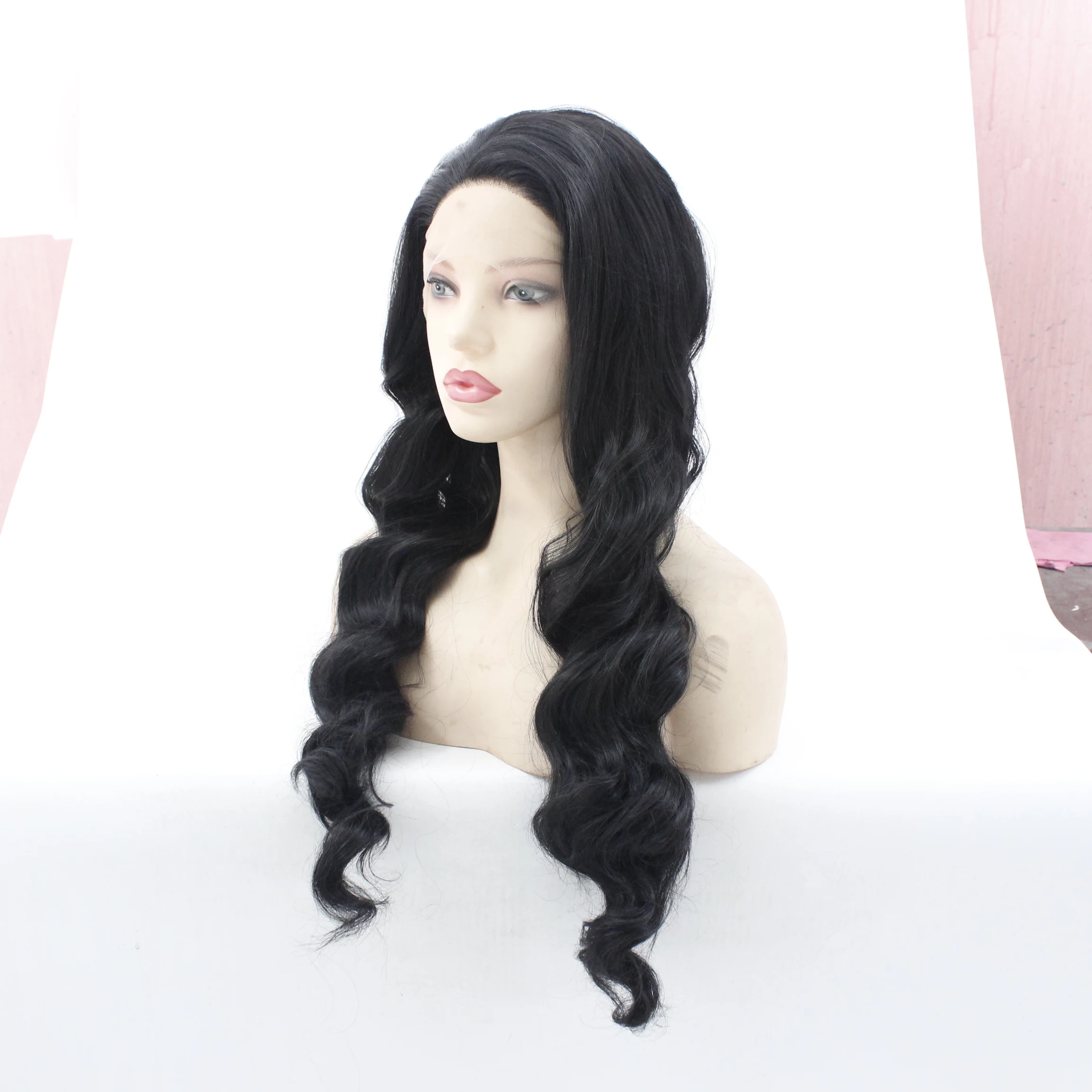 BEST SELLER MRWIG Free Part Long Wavy Synthetic Glueless Front Lace Wig Baby Hair Combs&Straps For African Amer