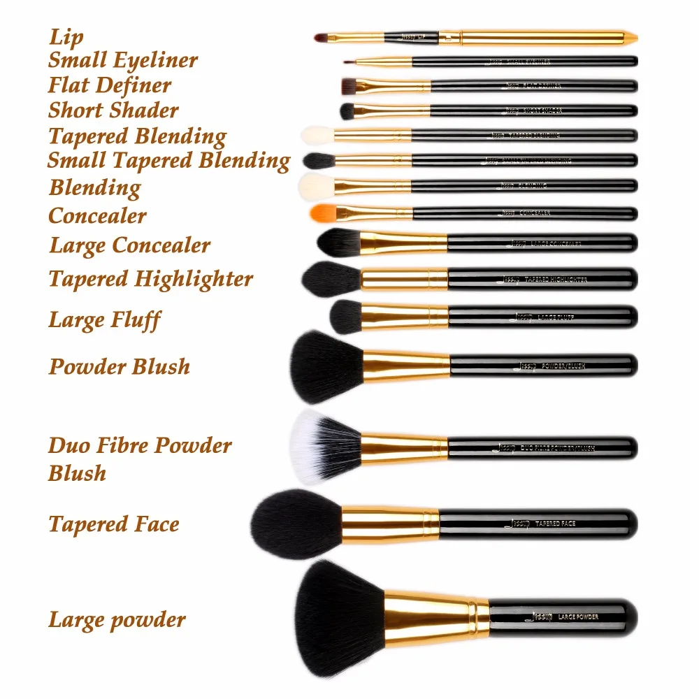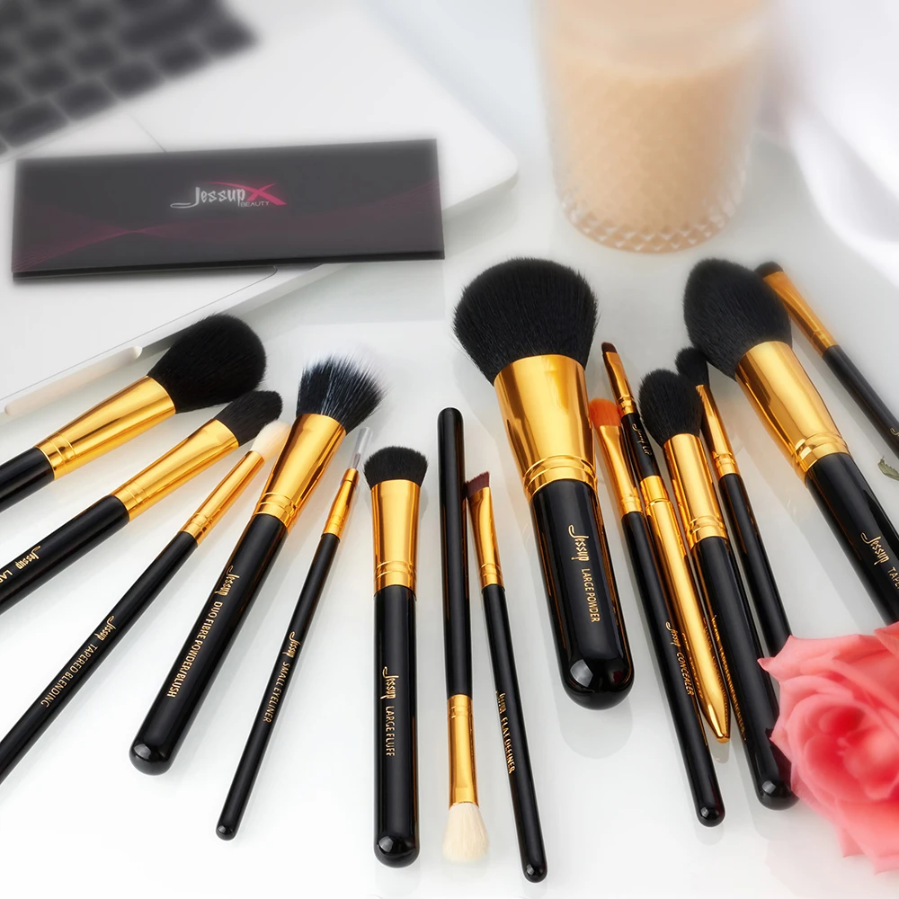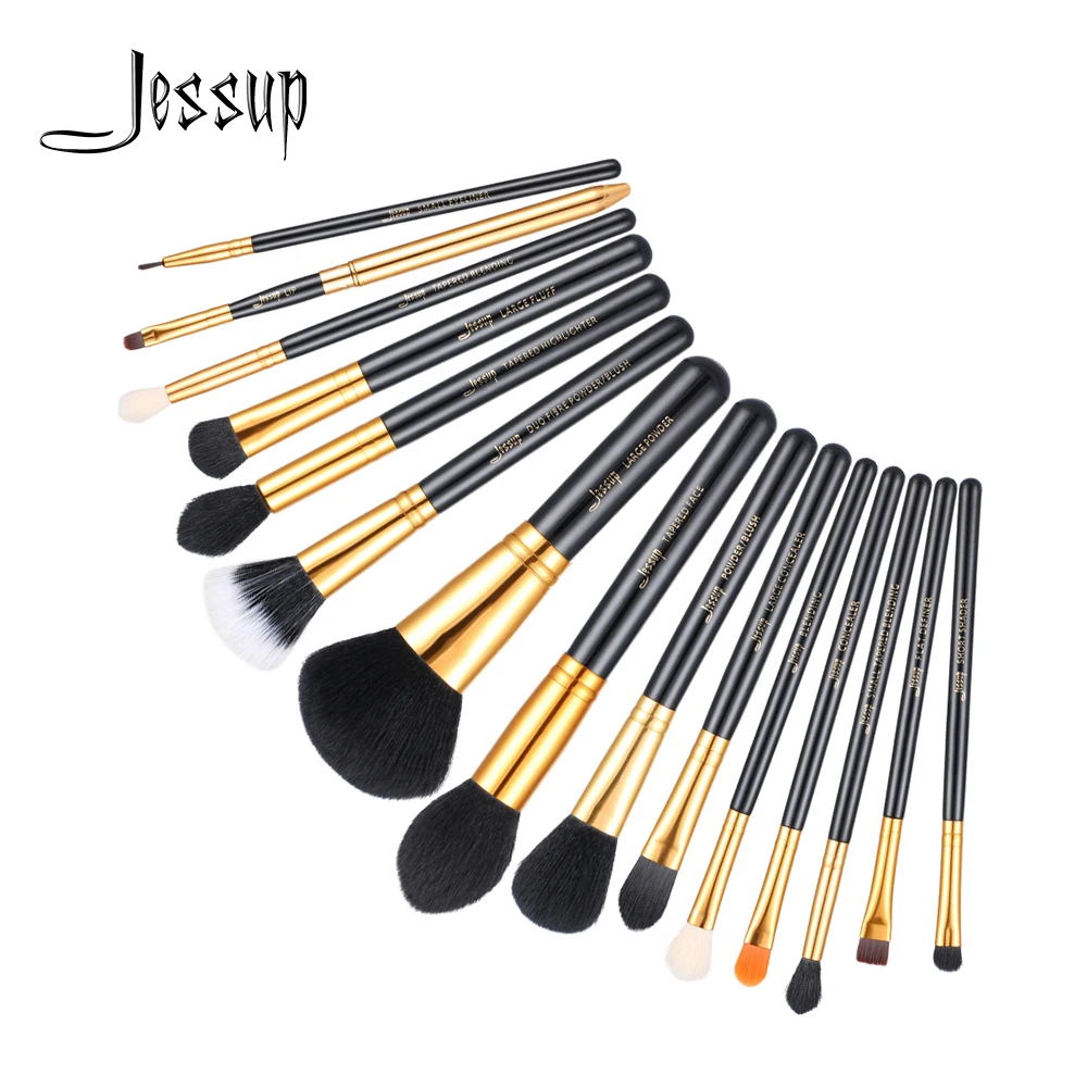 Best Quality Jessup makeup brushes 15pcs Black/Gold maquiagem Professional cosmetic Kit Eyelashes Powder Foundat