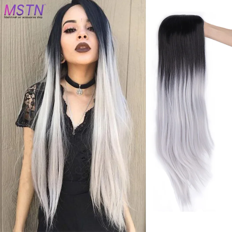 MSTN 26 Inch Long Staight Hair High Density Synthetic Wig Ombre Blue/Pink/Brown/Red Natural Hair Fo
