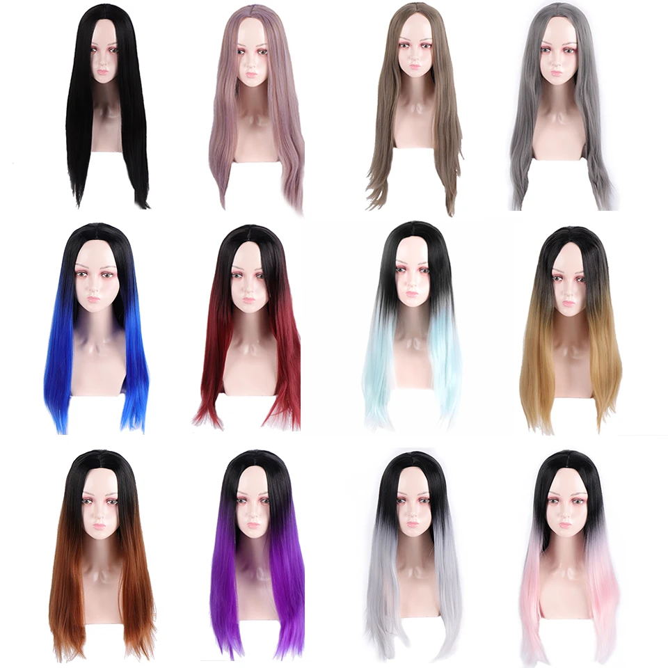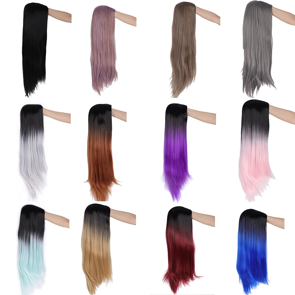 HIGH QUALITY MSTN 26 Inch Long Staight Hair High Density Synthetic Wig Ombre Blue/Pink/Brown/Red Natural Hair Fo