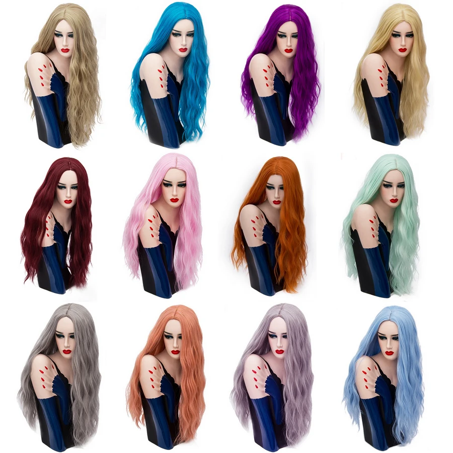 Yiyaobess 70cm Long Wavy Purple Wig Cosplay Synthetic Pink Green Natural Hair Wigs For Women High T