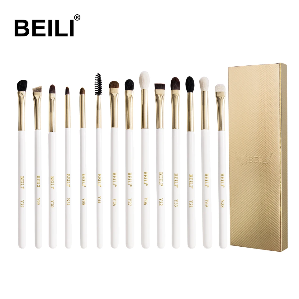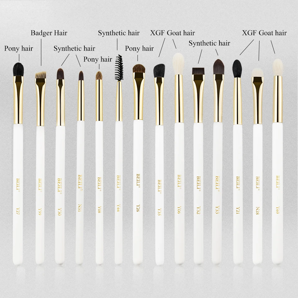 BEILI XGF Goat Hair Pearl White Gold Luxury Professional Eye makeup brushes set concealer smokey sh