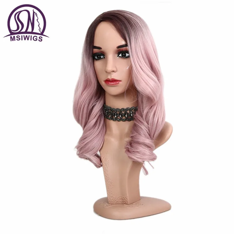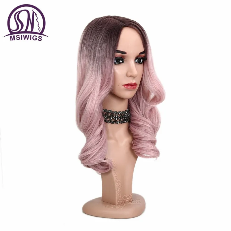 MSIWIGS 20 Inch Long Ombre Pink Wig for Women Two Tones Ashy Pink Wavy Wigs Heat Resistant Syntheti