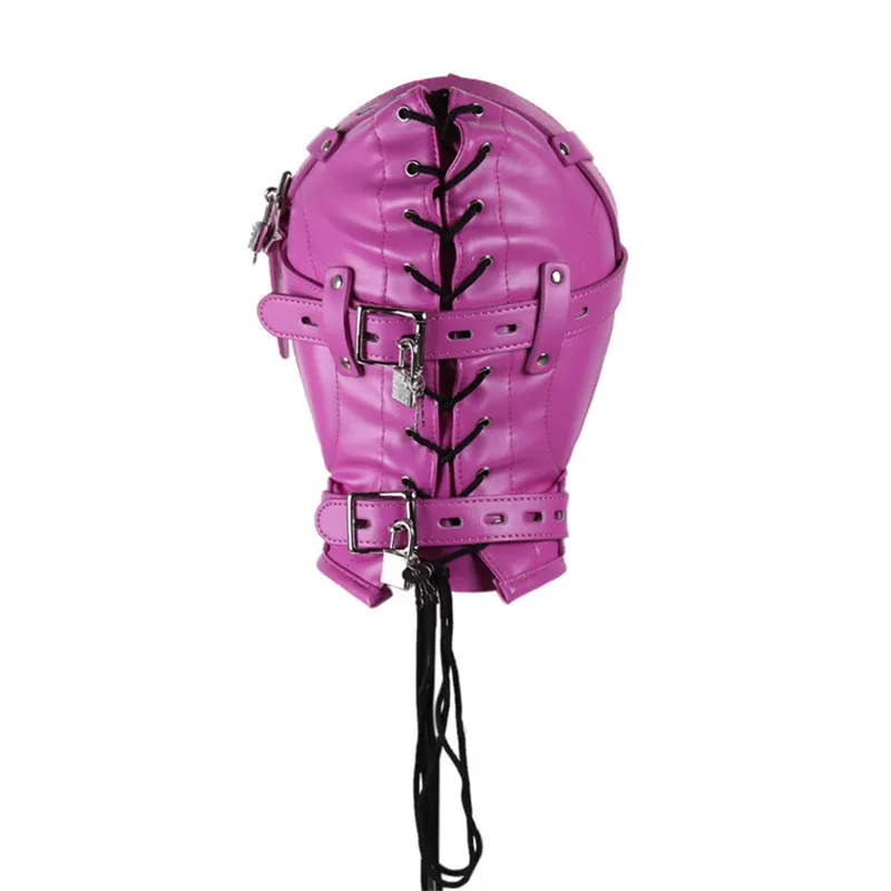 Porn Toys Adult Games Fetish Hood Headgear PU Leather BDSM Bondage Breathable Sex Mask With Plug Ho