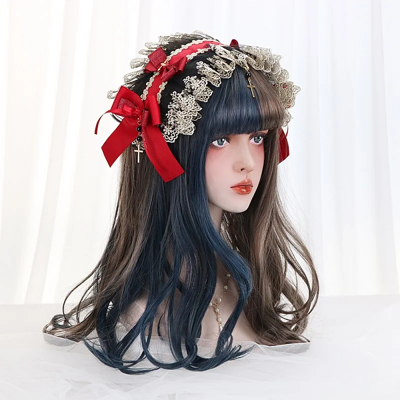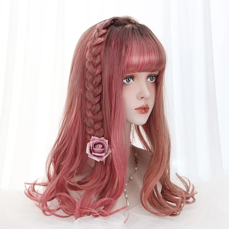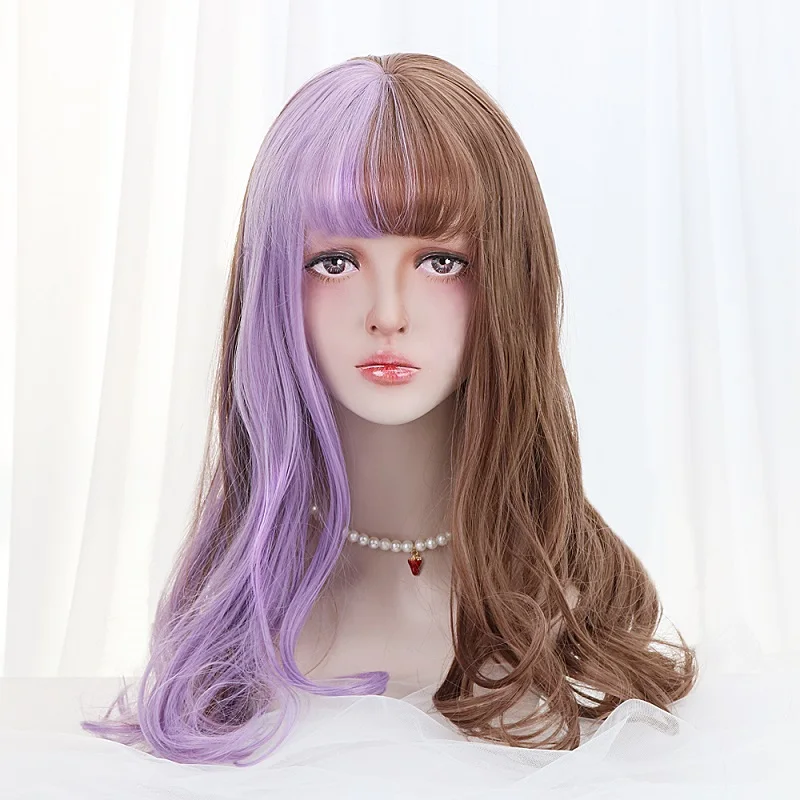 HIGH QUALITY 20"Long Wave Cosplay Lolita Wig With Bangs Red Purple Ombre Synthetic Hair Daily Harajuku Cosplay W