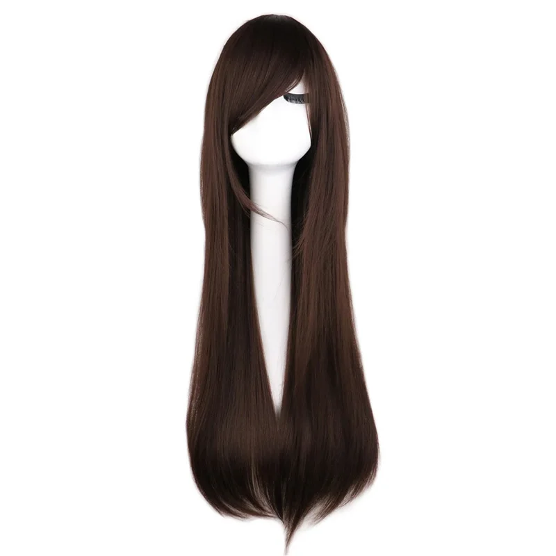 QQXCAIW Long Straight Cosplay Wig Party Women Men Costume Dark Brown 80 Cm Synthetic Hair Wigs