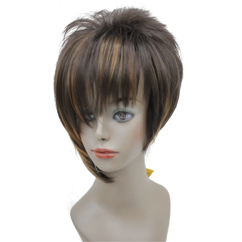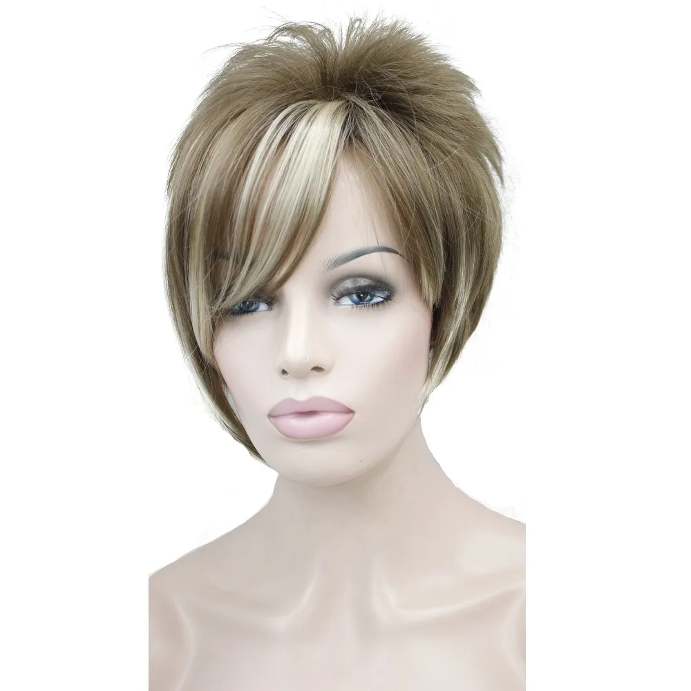 StrongBeauty Women's Wigs Asymmetric Inclined Bangs Short Straight Bob Natural Synthetic Full Wig 4