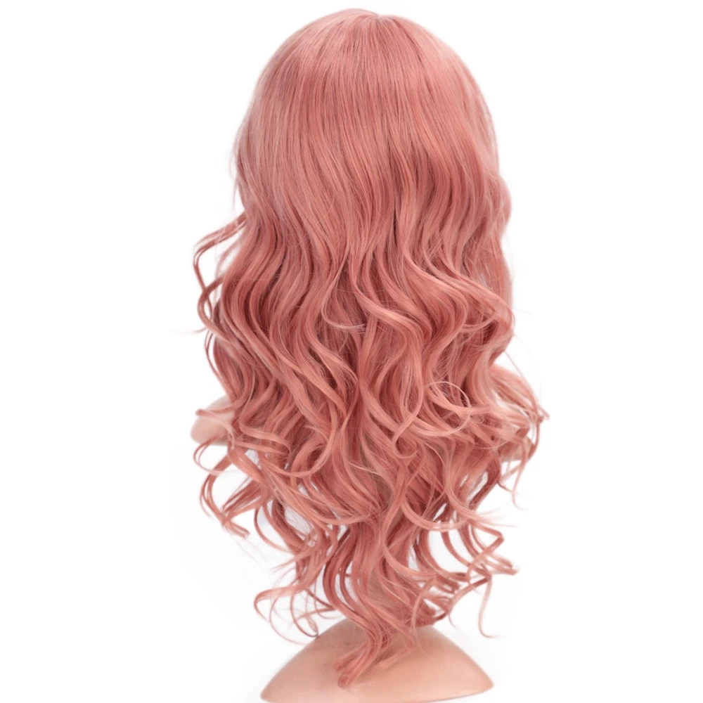 Best Seller Stamped Glorious Long Pink Purple Blue Wave Wig With Bangs Synthetic Wig for Women Heat Resistant F
