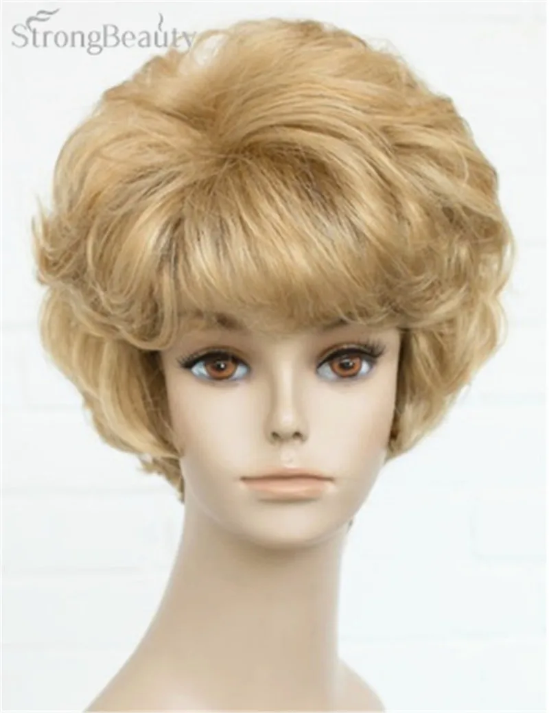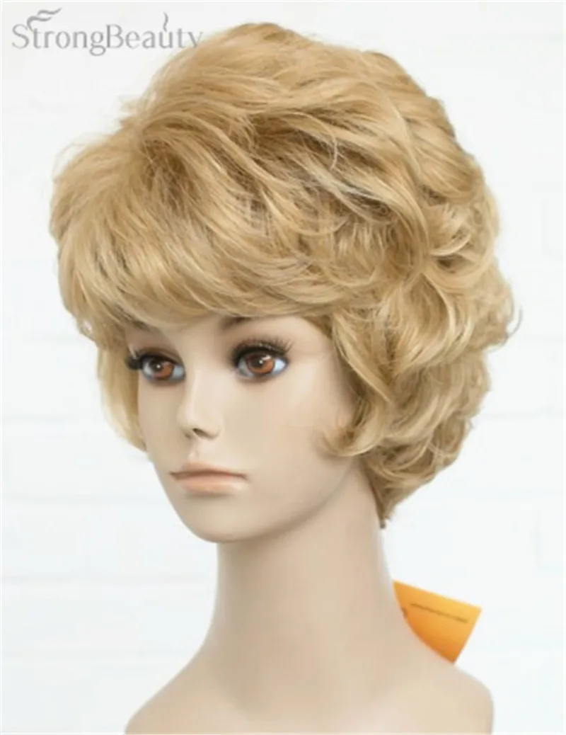 ORIGINAL Strong Beauty Short Curly Golden Blonde Synthetic Hair Full Capless Wig