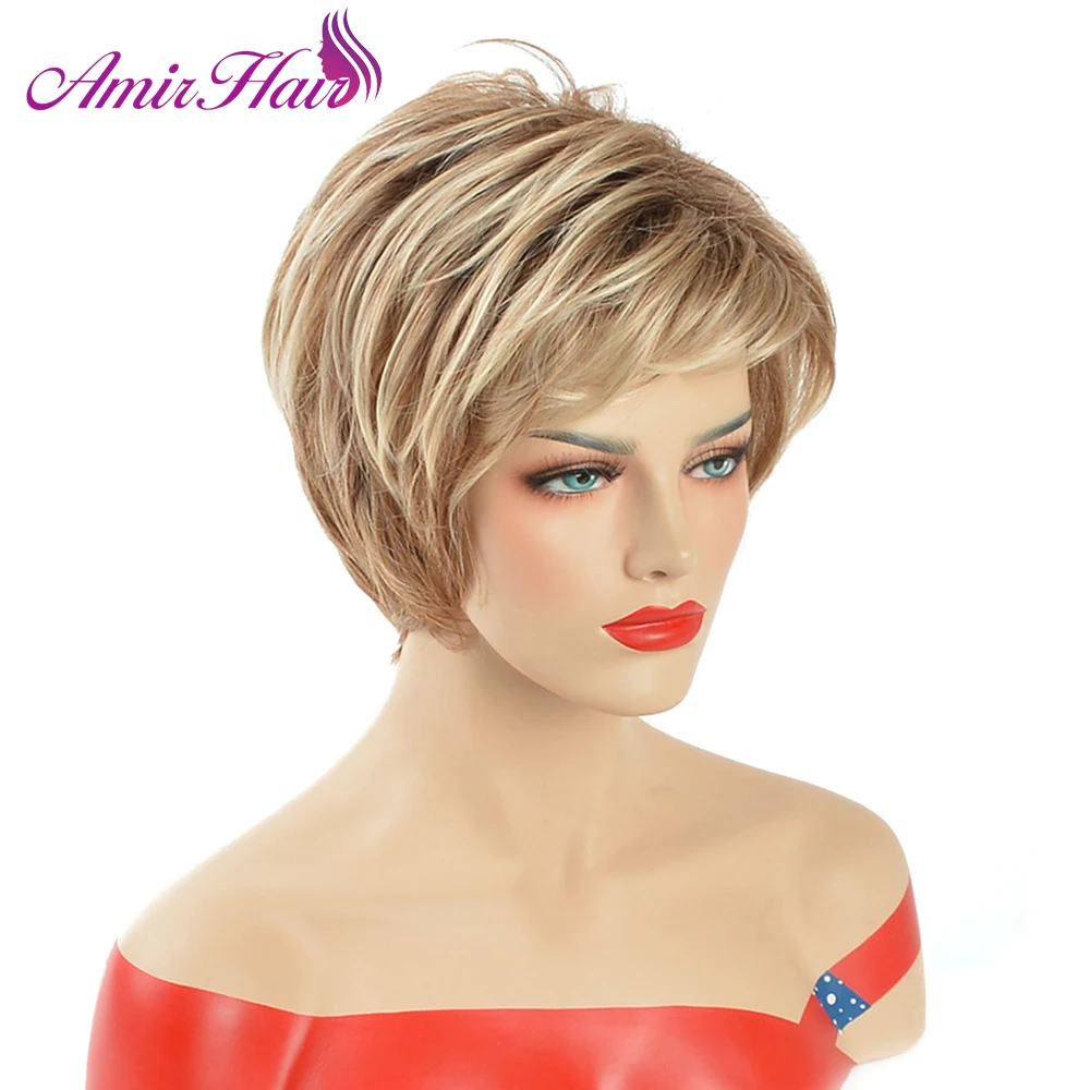 HOT Sale Amir 6inch Puffy Blonde Wig Heat Resistant Synthetic African American Short Straight Wigs For Middl
