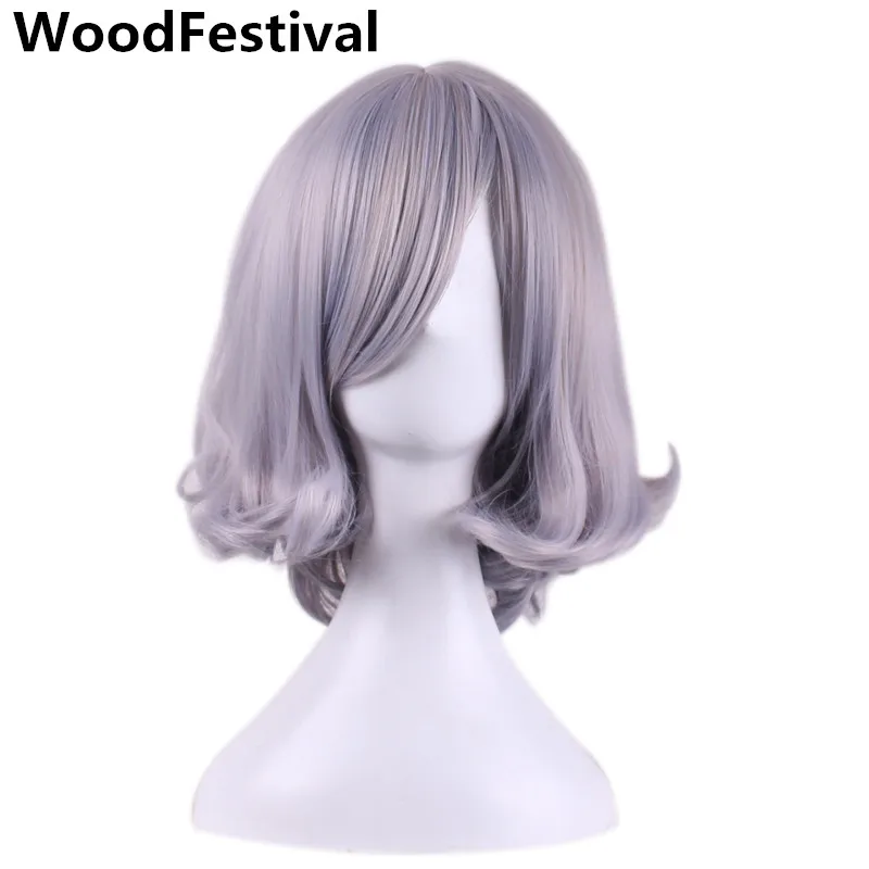 WoodFestival Grey Wig Short Cosplay women wigs synthetic with bangs