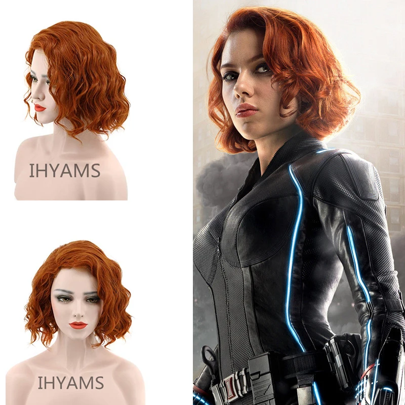 The Avengers Black Widow Natasha Romanoff Short Orange Curly Synthetic Hair Cosplay Wig + Wig Cap