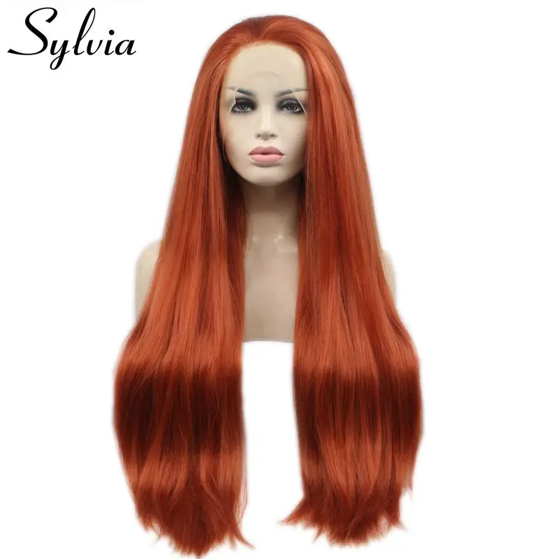 Sylvia Long Yaki Straight Hair #360 Color Orange Synthetic Lace Front Wig For Women African Heat Re