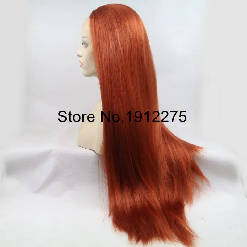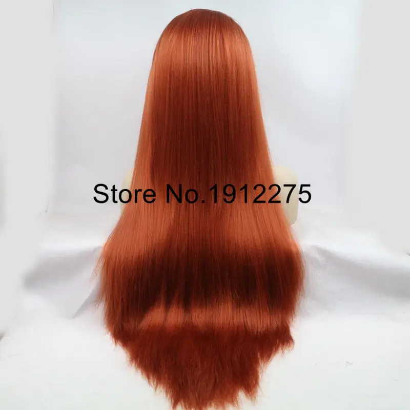 BEST QUALITY Sylvia Long Yaki Straight Hair #360 Color Orange Synthetic Lace Front Wig For Women African Heat Re