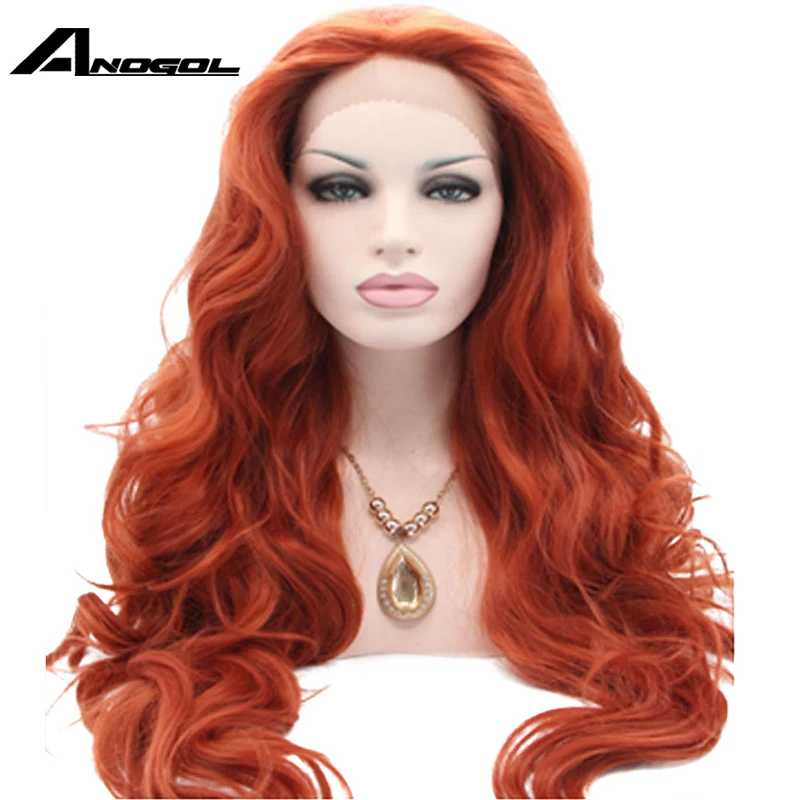 Anogol Heat Resistant High Temperature Fiber Hair Long Natural Wave Orange Auburn Copper Red Synthe