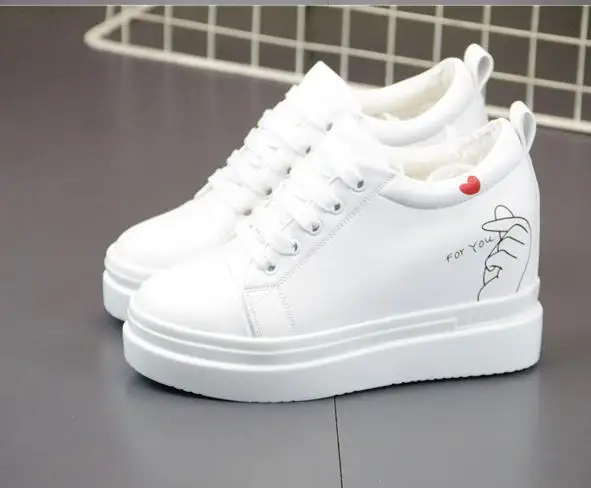 HOT Sale 2019 Women Sneakers Casual Platform Trainers White Shoes 10CM Heels Autumn Wedges Breathable Woman