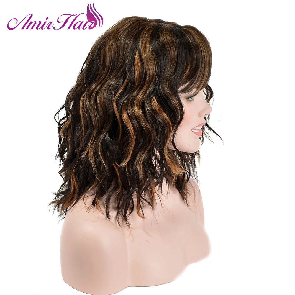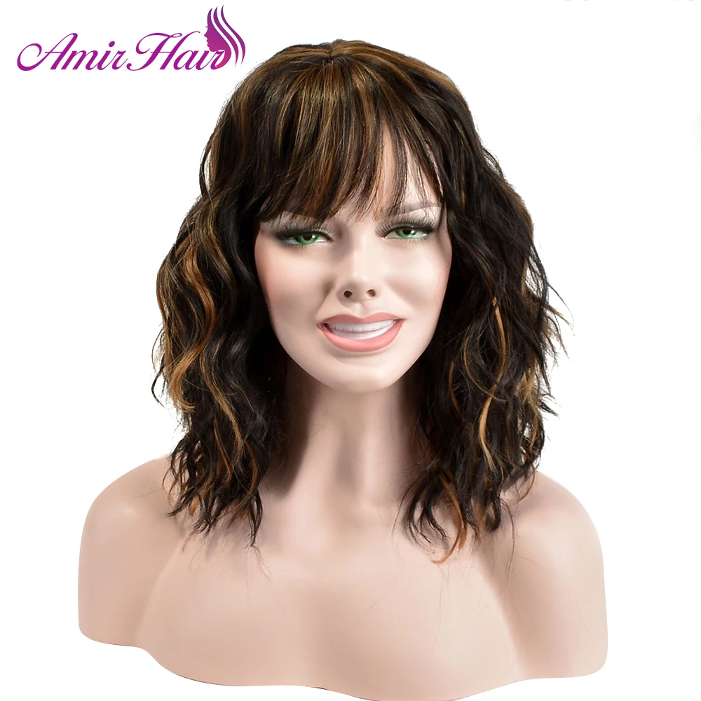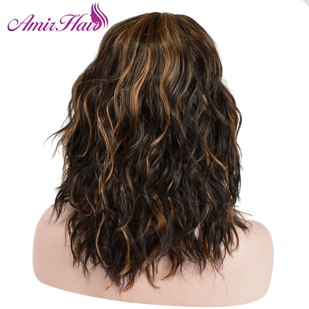 Amir Curly Women Middle Part Cosplay Wigs High Temperature Fiber Synthetic Hair Brown color mix Med